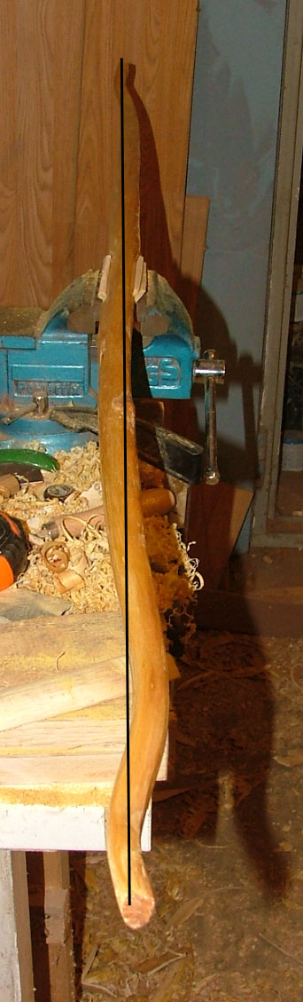 dann Reflex des letzten Wurfarmdrittels an die Gegenseite angepasst und schließlich im Griffbereich so gebogen das Griff und Tips auf einer Achse liegen.