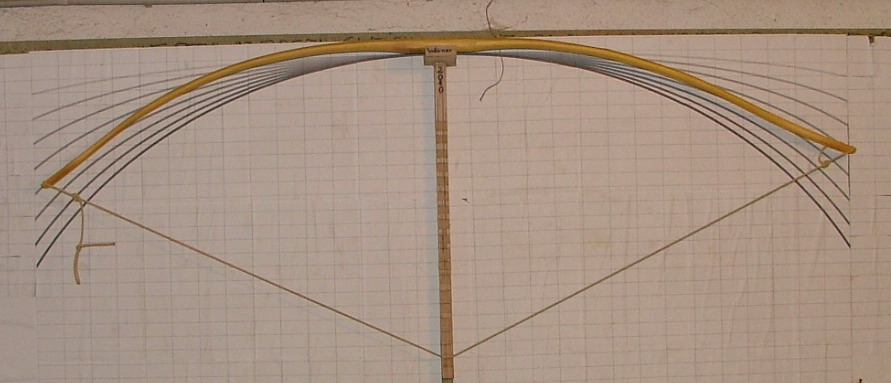 Kann sein das es nicht ganz so schlimm wird, die Zeichnung des Vollauszugs dürfte etwas überschätzt sein und der Auszug in der Zeichnung irgendwo jenseits der 33" liegen, ich werde den Bogen wenn es geht bis 30" oder 31" Auszug tillern, also kann es sein das die Radien ein bisschen (aber nur ein bisschen) weniger krass ausfallen.