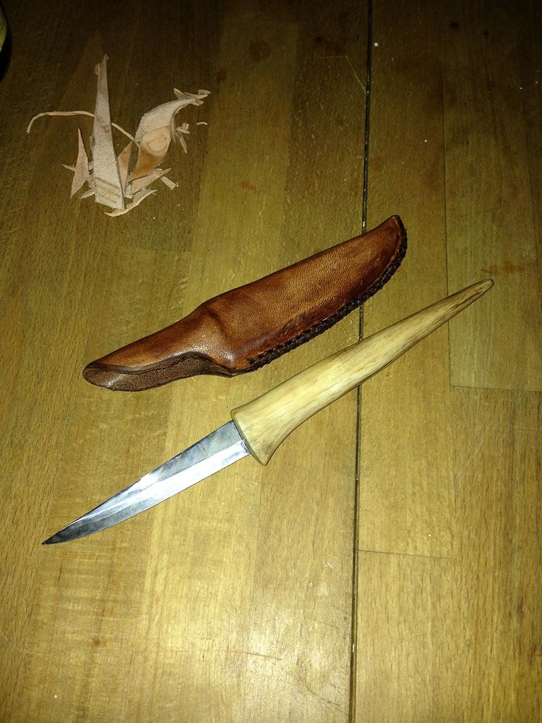 Klinge war fertig gekauft, Griff ist aus Geweih.