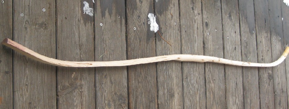 Bei den "Saplings" hat man es oft mit krummen, astigen oder auch zu schmalen Staves zu tun. Da ist es oft besser, zwei gute Billets im Griff zusammenzufügen und so aus zwei minderwertigen Stecken einen guten zu machen.