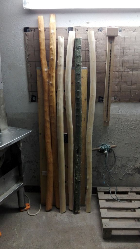 Ganz links ist der Weißdorn, rechts davon sind die Pfaffenhütchen. Die 2 Hälften Pfaffenhütchen in der Mitte , werde ich wohl mit einem Bambusbacking versehen und die Kombi mal ausprobieren. Beide Hälften habe zuviele kleine Äste im Rücken(da habe ich schon schlechte Erfahrung gemacht), aber beide sind so gerade, dass ich sie nicht stehen lassen konnte