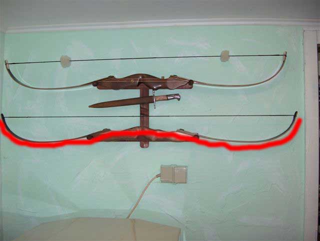 ne Sehne um 9cm eindrehen is nicht. Das ist ja dann fast eine Spiralfeder. Eine Sehne sollte max. 1" eingedreht werden. Nimm eine Sehne die 155-156 cm lang ist und dann reden wir weiter.