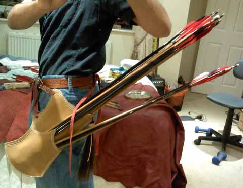 Allgemein noch ein Tipp dazu: Wenn du Lederreste hast schneide dir möglichst exakt ein Stück zu ( z.B. 5x5 cm). Das härtest du dann so aus wie beschrieben und misst dann ab, um wie viel es eingeht. Wenn das spürbar kleiner wird solltest du die Methode besser lassen. Alternativ wäre das Ding einfach so zu lassen wie es ist und dann im Hochsommer das Leder bzw. den fertigen Köcher tränken und in der Sonne trocknen lassen.