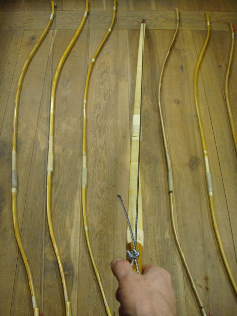 Ein neuer Bogen bleibt dann auch eine Weile gespannt um sich zu setzen. Er wird gerichtet, gezogen, man schaut wie er ohne Sehne reagiert - das heisst wie schnell der Reflex nach Abnehmen der Sehne wieder zurück kommt z.B.