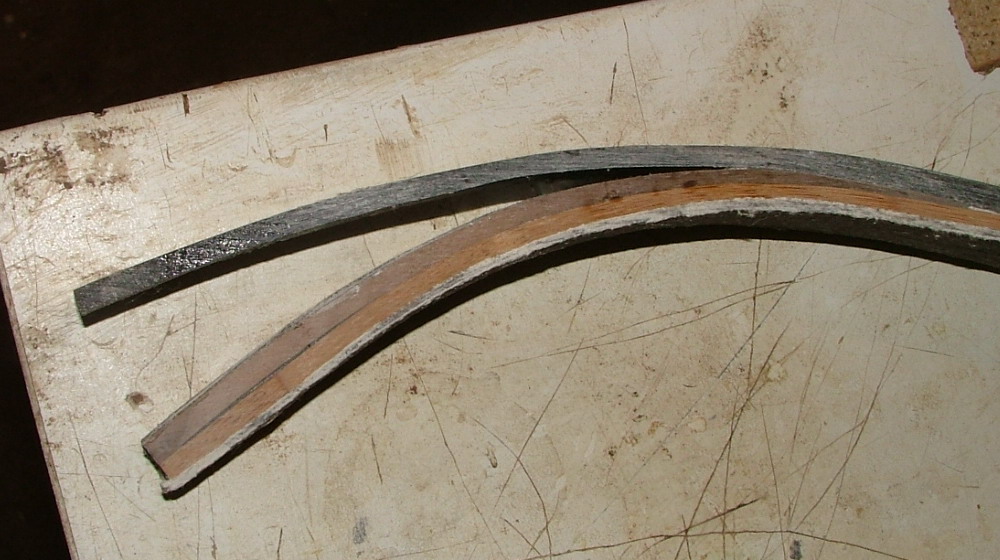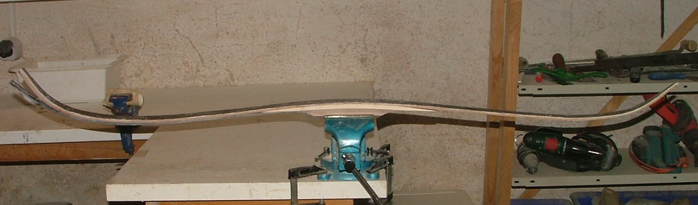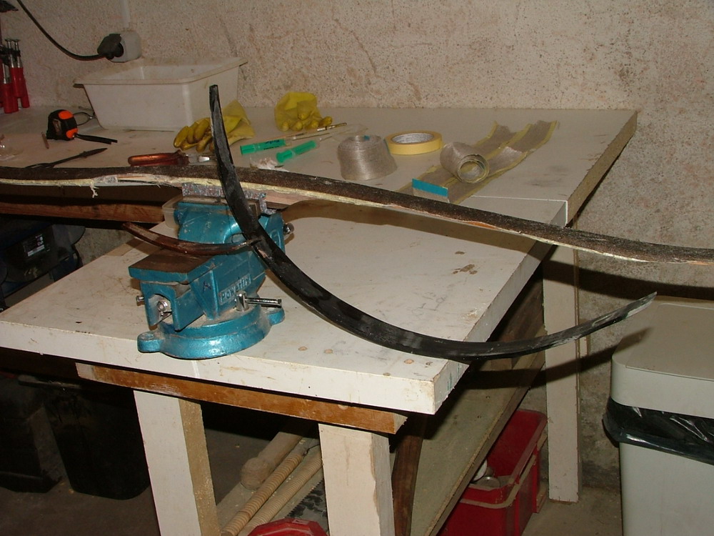 Das bei dem Bogen verwendete Horn ist wirklich recht teuer und auch das Bearbeiten des Selben rechtfertigt schon ein wenig Aufwand, Vor allem da ich das Horn auf jeden Fall retten wollte, ein Streifen hatte sich ja eh vollständig gelöst, der andere war aber zu 80% fest mit dem Bambus verbunden, den Bogen vom Horn runterzuschleifen wäre mindestens genausoviel Arbeit gewesen. Der Bambus und die Flachsfasern sind gar nicht so Aufwändig zu verarbeiten. der Bambus aus einer 5mm stabverleimten Platte ist eigentlich eh ein Halbzeug und das Laminieren des Flachs geht eigentlich schnell.