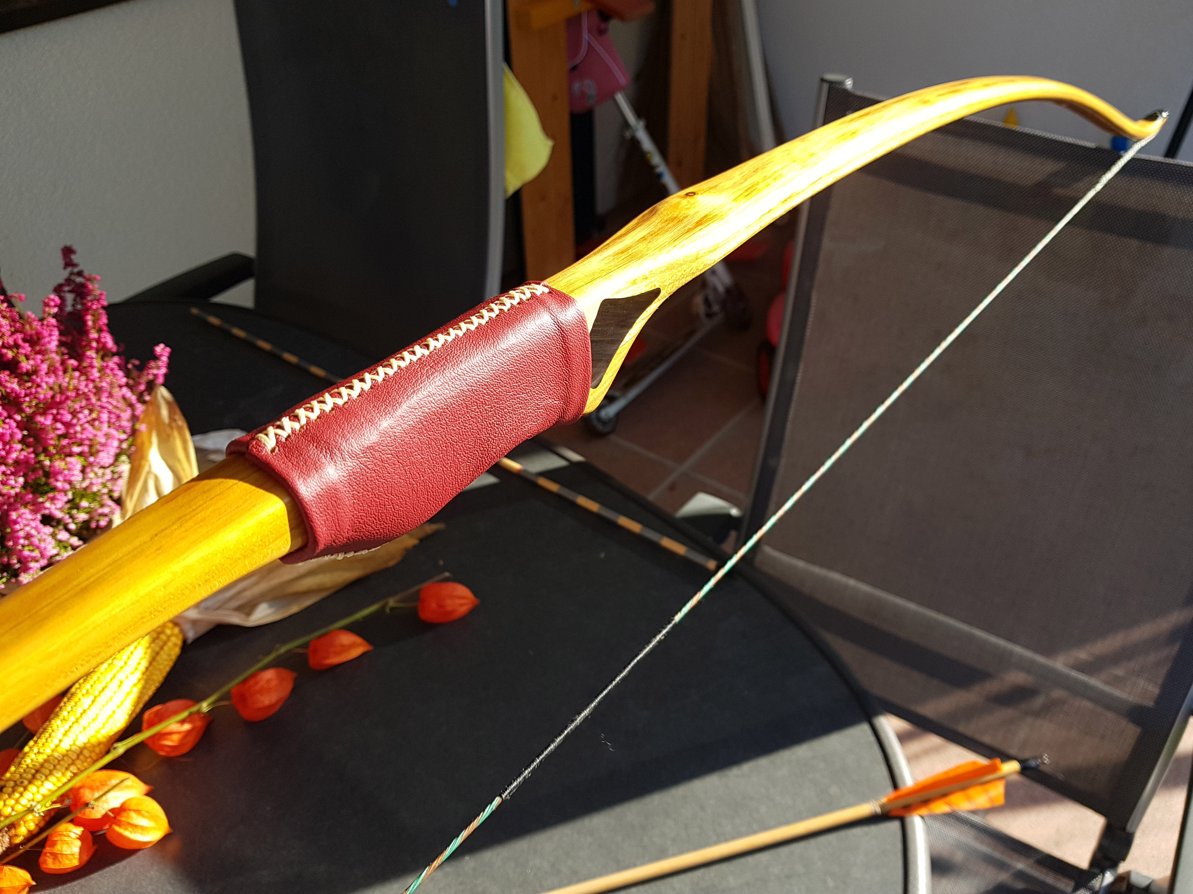 seit meinem letzten Beitrag hab ich einen Arrowpass aus Horn eingefügt, den Bogen feingeschliffen, die Oberfläche versiegelt und einen Ledergriff dran gemacht. Jetzt endlich ist er fertig und trocken und ich freu mich auf das nächste Wochenende auf eine Herbstrunde am Parcours :)