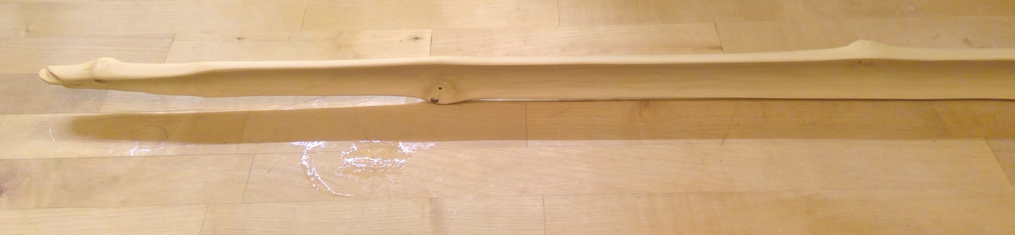 Meinen Saplingbow habe ich heute Abend fertiggestellt, hat eben die erste Leinölfirnislage erhalten.