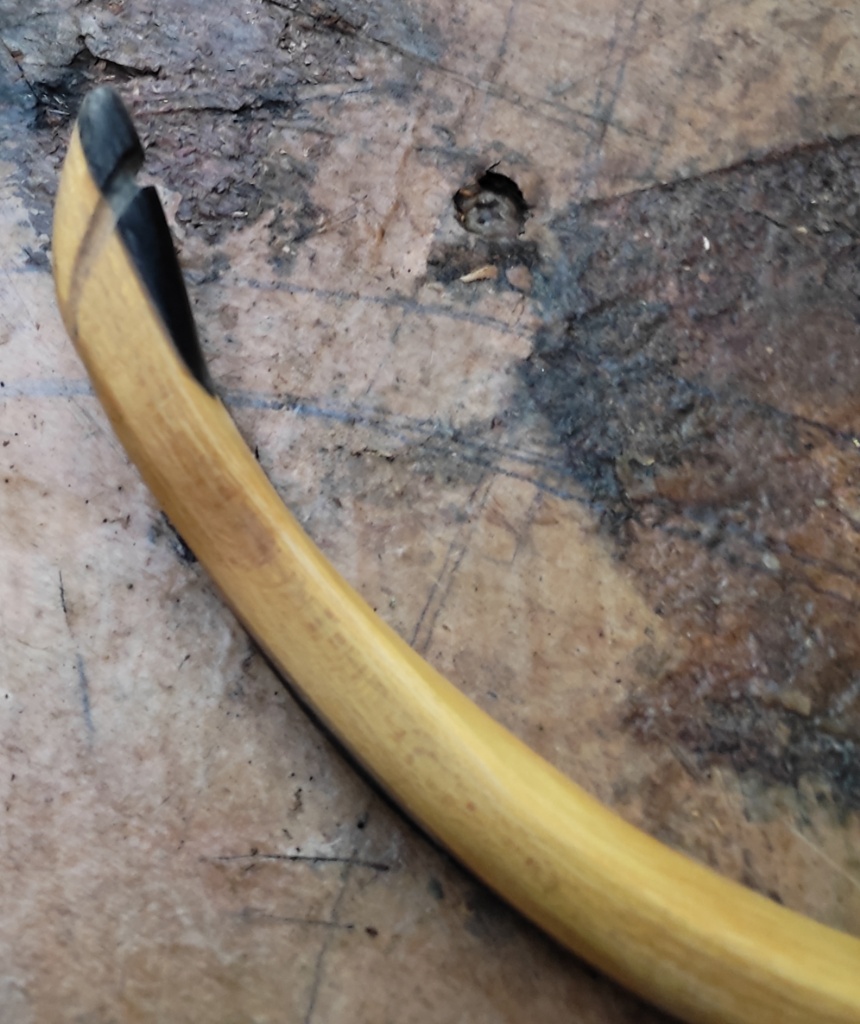 Ein Stück Horn auf diesen gekrümmten Recurve zu setzen war nicht gerade einfach