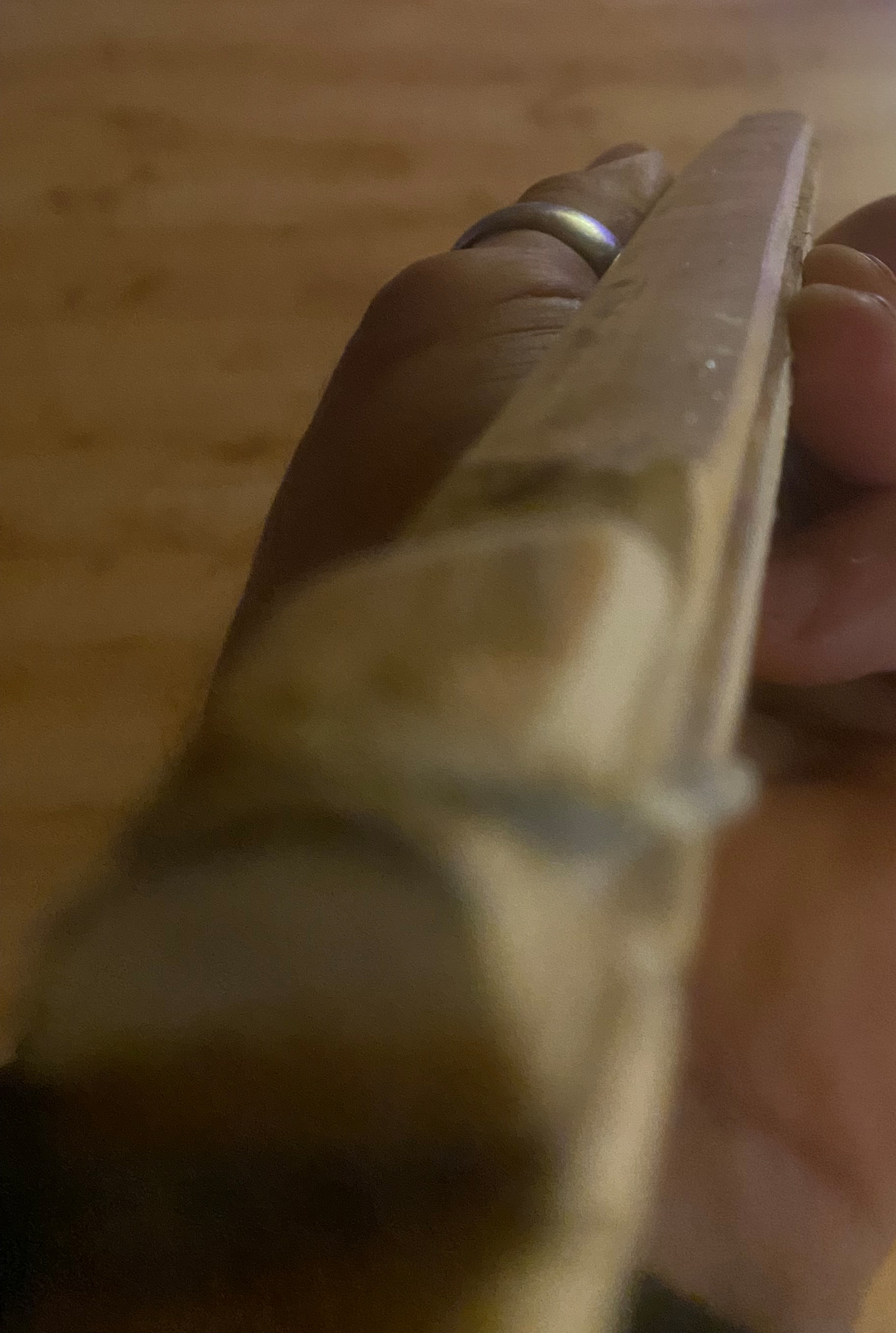 Ich habe versucht, gegenzusteuern, indem ich auf der nach außen gewölbten Seite Material abgenommen habe. Das hat eine leichte Verbesserung gebracht, allerdings erstmal nur wenig.