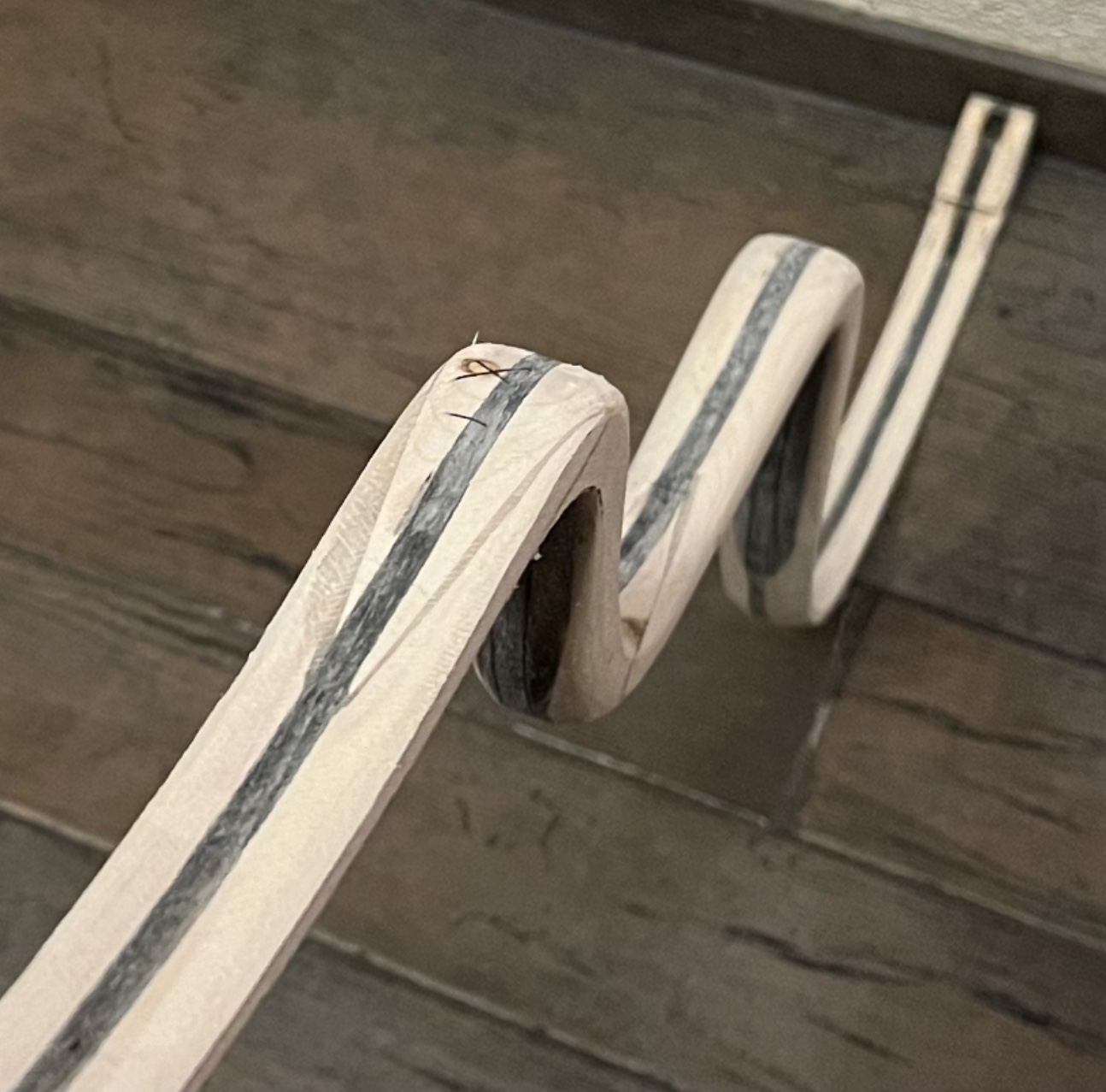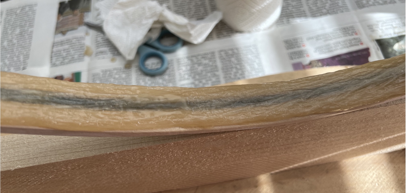 Die Linien entsprechen dem Verlauf des stehenden Hornlaminats darunter. Brauche ich beim Schleifen zur Orientierung. Im Kniebereich und im Wurfarmbereich ist das Querschnittsprofil dreieckig. Die Linien entsprechen dort dem Scheitel des Dreiecks.