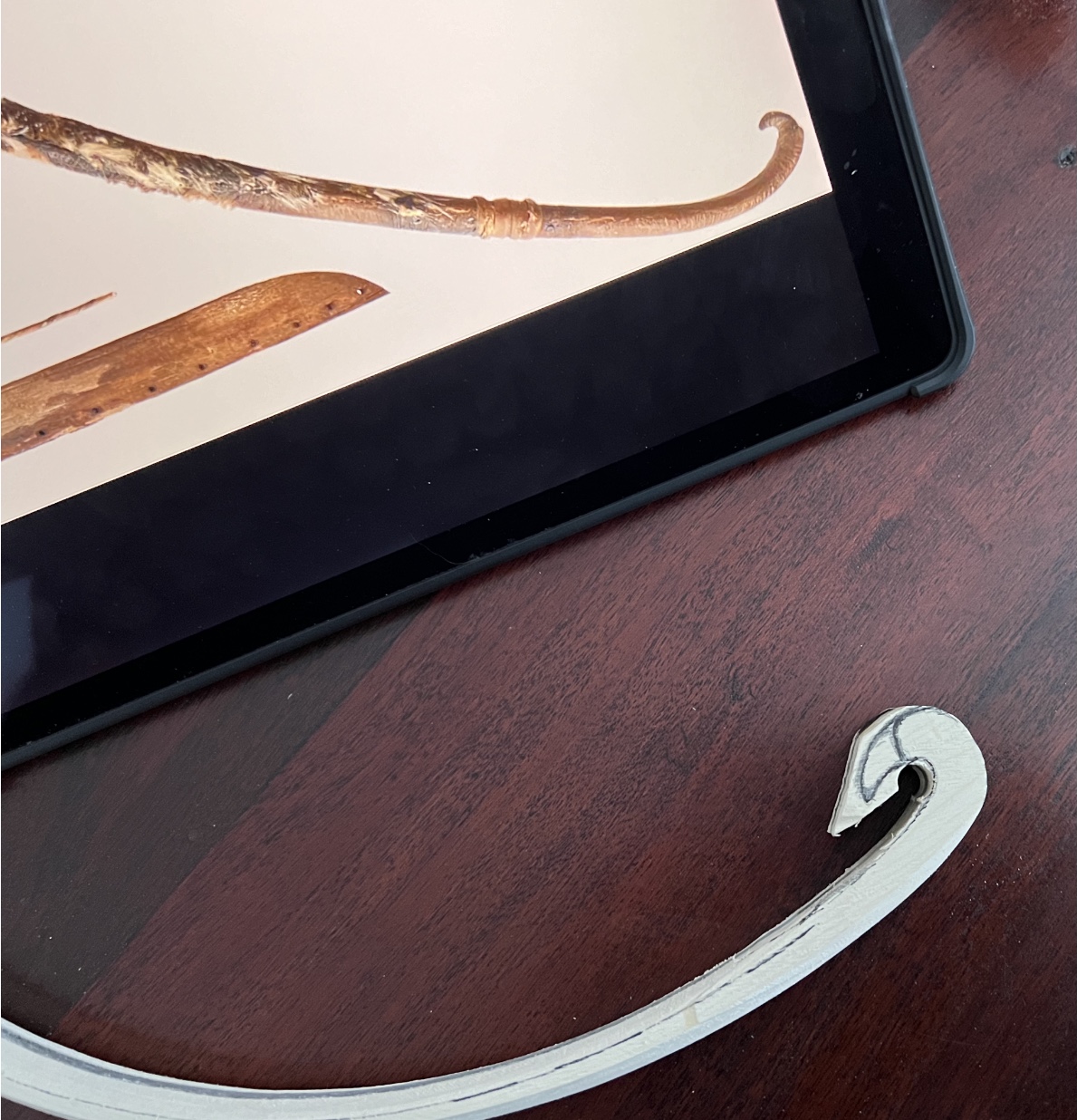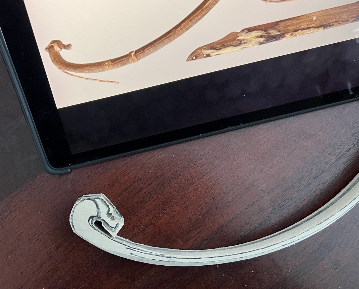 Der Bogen könnte auch im WA liegendes Horn haben. Ich hab nicht so viele Infos wie mir lieb wäre. Aber hier noch die Fotos/Skizze mit den Positionen der Maßangaben.