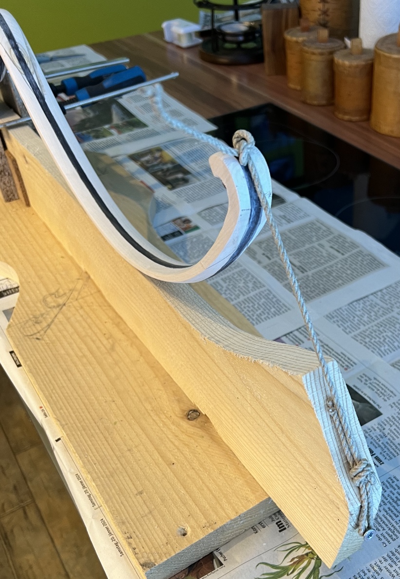Heute die Tipps zurecht geschnitten und verschliffen. Oberes Tip in Form einer Kobra. Unteres Tip in Form eines Pferdekopfes, die Wurfarmenden noch etwas verschmälert, Sehnenkerben eingesägt und dann den Rücken verschliffen. Gewicht jetzt 367 Gramm. Raspeln, verschiedene Feilen, Fliesensäge, schmale lange Schleifbandstreifen, Bandschleifer, Schleifpapier bis 180. Jetzt gehts noch ans Straußensehnen zupfen. LG Stephan