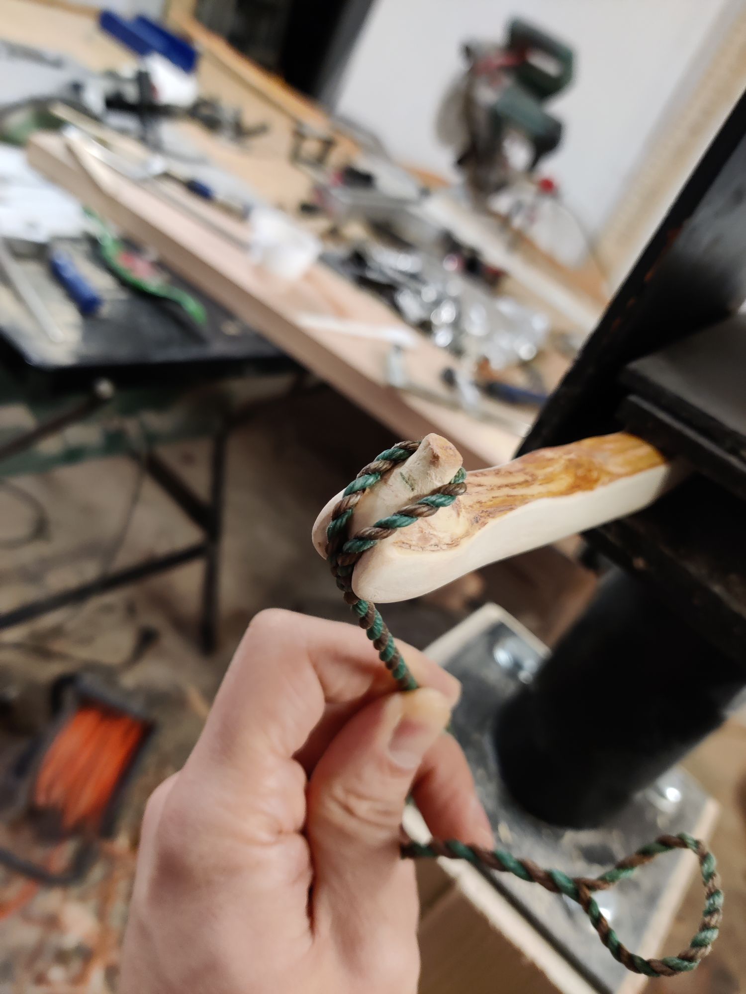 Heute hab ich die "Nocken" ausgeformt. Die Sehne ist nur zur Veranschaulichung. Da werd ich dann eine mit kleineren Öhrchen machen.