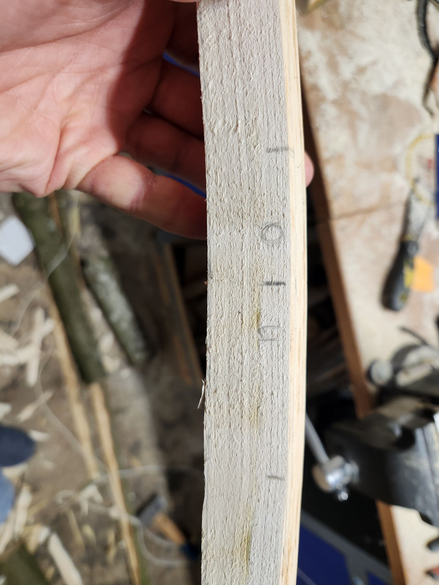 Die Hasel Recurves wiegen 99g und die Ahorn 85g. Ich hab dann die dicke der Recurvepaare gemessen. Die Haselleisten sind zusammen noch 32mm dick und die Ahornleisten 29mm. Aber wenn man das auf die gleiche Dicke rechnet sind die Ahornleisten trotzdem noch etwas leichter, also werd ich die nehmen.