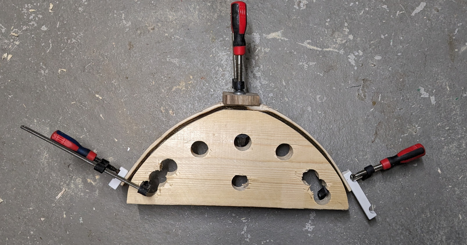 Zuerst wollte ich nochmal mit Dampf biegen, hatte dann aber die Eingebung zwei Keile einzusetzen, so dass nichts mehr zurück kriecht...