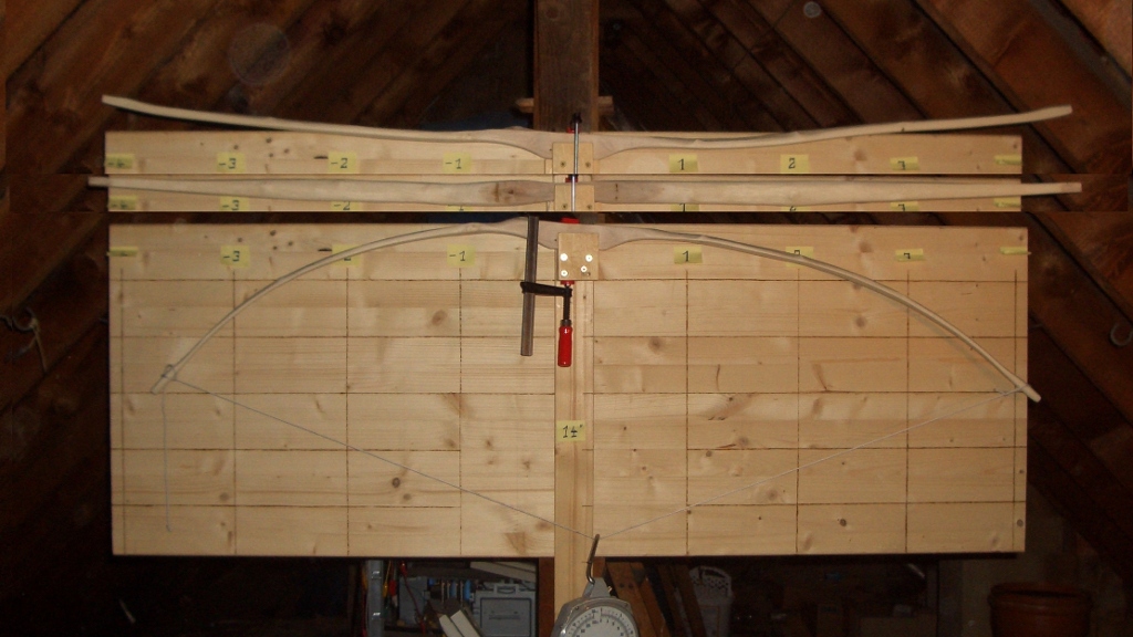komm ich nicht drumrum endlich mal wieder über den Hasel zu berichten. Habe also fleißig das Tillern begonnen, wobei ich mir diesmal geschworen habe, Disziplin in Punkto Schnelligkeit beim Holzabbnehmen walten zu lassen. Ist mir auch gelungen, so dass der Bogen aktuell 37# bei 28" Zugkraft hat.