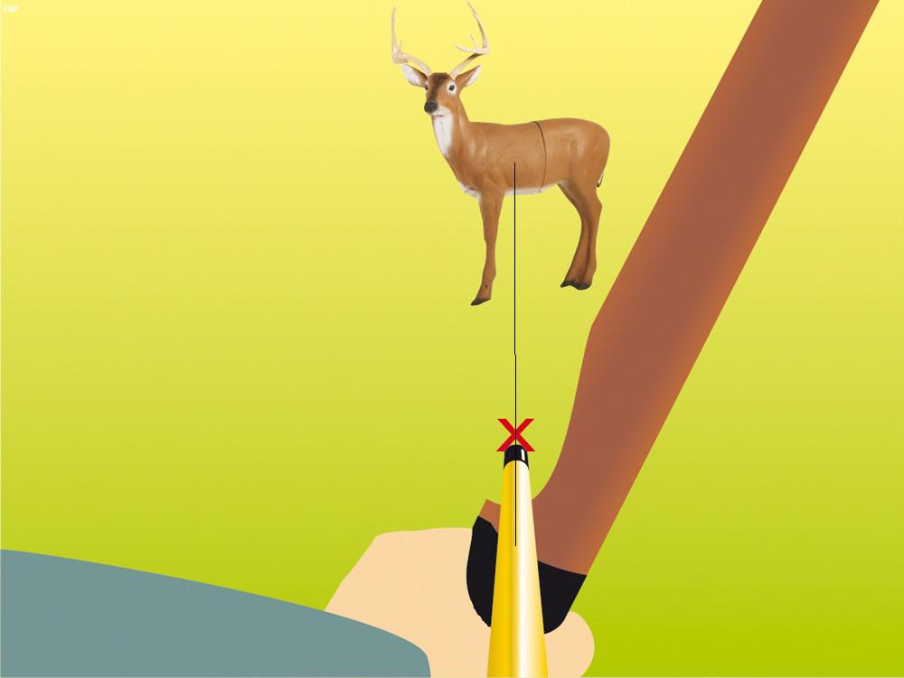 Simon, meine These ist, dass es grundsätzlich falsch ist, am Pfeil entlang zu "peilen" und dadurch eine Linie zum Ziel herstellen zu wollen, so wie es das oben gezeigte Bild und auch dieses Bild von Swoboda meiner Meinung nach zeigen: