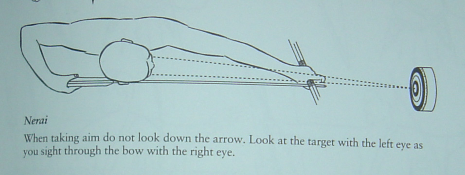 worauf ich hinaus wollte ist, dass die gerade Linie: Auge - Pfeilnocke - Pfeilspitze - Ziel wie auf dem Bild abgebildet nur mit einem, und zwar dem rechten Auge realisierbar ist, stimmst Du mir da zu?