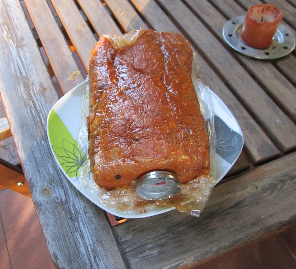 Was macht der BBQer abends um zehn? Sich ein Bierchen genehmigen und sich aufs Grillen ab morgen früh um sechs freuen. Wetter paßt, Besuch kommt, Zeit ist reichlich vorhanden, also los! Das haarigste kommt wohl morgen früh, wenn ich den Grill anzünde und die Temperatur einregele. Das hab ich so genau noch nicht gemacht. Hier ein paar Bilderchen zur Doku der Vorbereitungen: