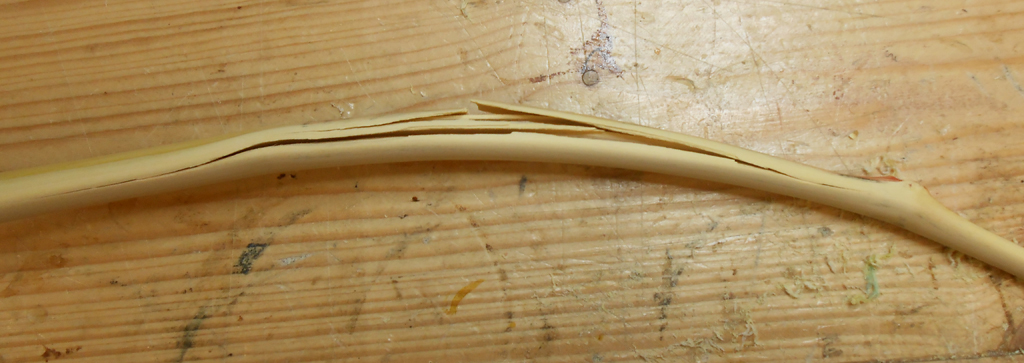 ziemlich so ist mein erster Bogen gebrochen.... nachdem ich ihn mit Leinölfirnis behandelt hatte... hab ich seither nie mehr gemacht... irgendwie denke ich Leinölfirnis dringt zu tief ein und braucht daher zu lange zum Trocknen und weicht das Holz daher auf und es kann dem Zug nicht mehr standhalten... ist aber reine Theorie.... ich nehme seitdem nur noch Hartöl und Hartwachs von Livos