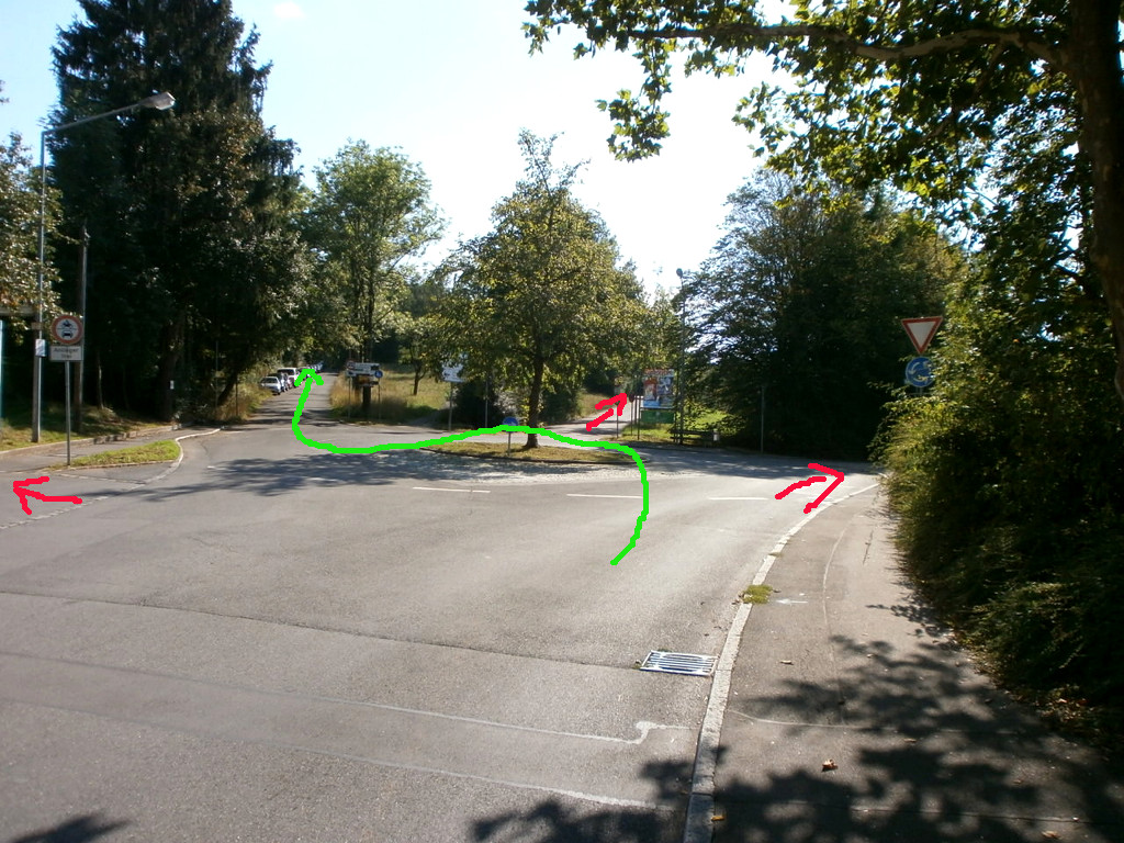 Am Ende der Straße rechts abbiegen und zum Kreisverkehr um dann die richte Ausfahrt zu nehmen
