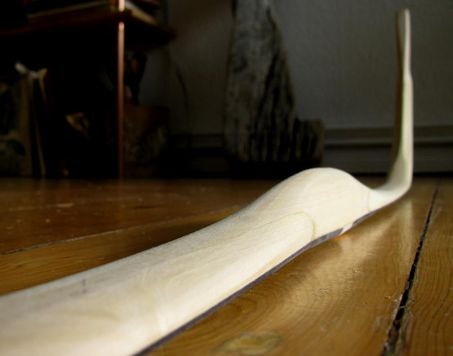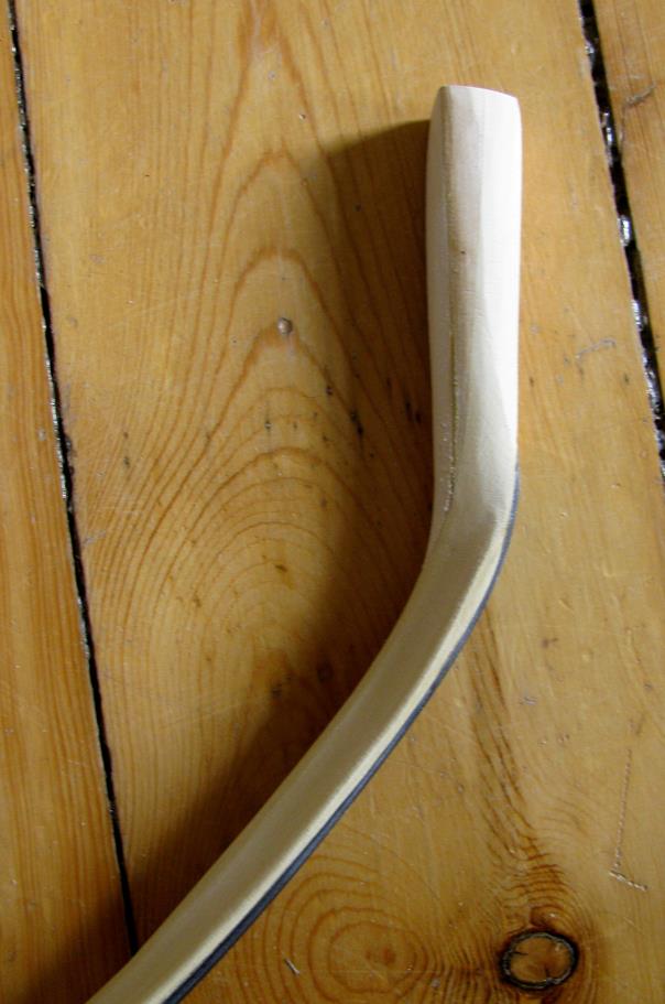 Im Übergang zu den Tips habe ich an besagten Stellen, die mir zu dünn erschienen jeweils noch einen dünnen Streifen Holz aufgeleimt.