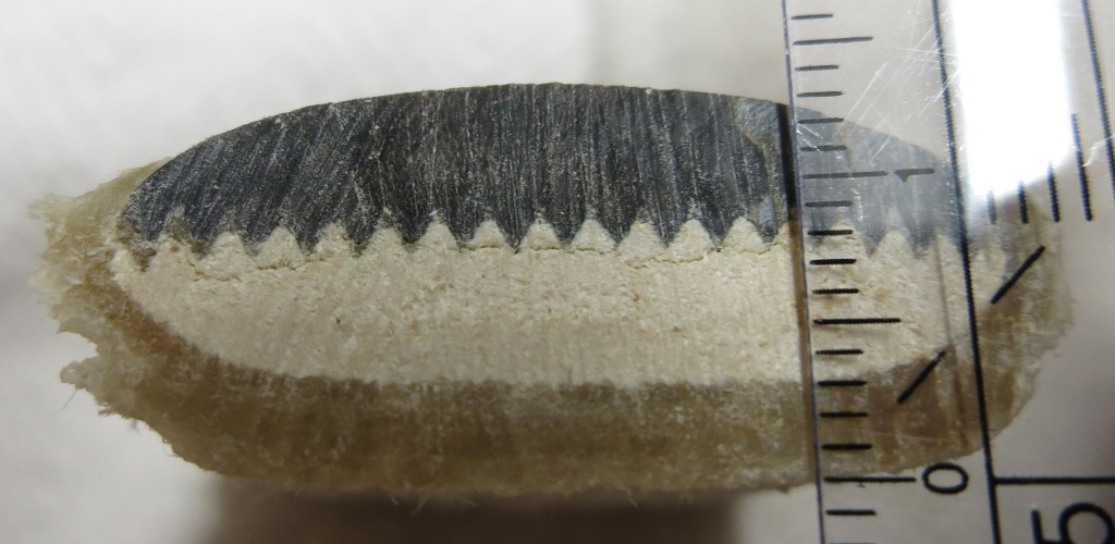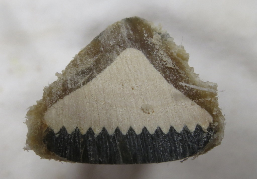 Der Bruch im Holz folgt hier schön dem Jahresring: