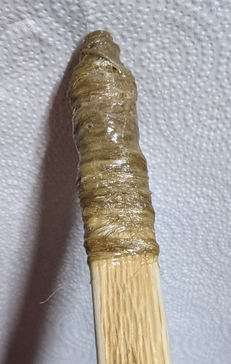 Flippen hab ich mir auch schon überlegt. Zum einen passt es aber nicht zum Stil den ich verfolge, zum anderen würde es die Wurfarme auch wieder mehr belasten und ich möchte gerne den letzten Zoll Reflex behalten. Dann kommt noch der Aufwand dazu, Wicklung und overlay neu zu machen. Was mich aber wirklich davon abhält ist die Angst, das was bricht. Ich habe schon einige Bögen gekillt, weil ich es wissen wollte und mit der HLP übertrieben habe. Irgendwann ist halt Schluss und das Holz bricht bei der kleinsten Biegung am Bauch. Da der Bogen 4,5h über dem Feuer war, will ich es nicht riskieren.