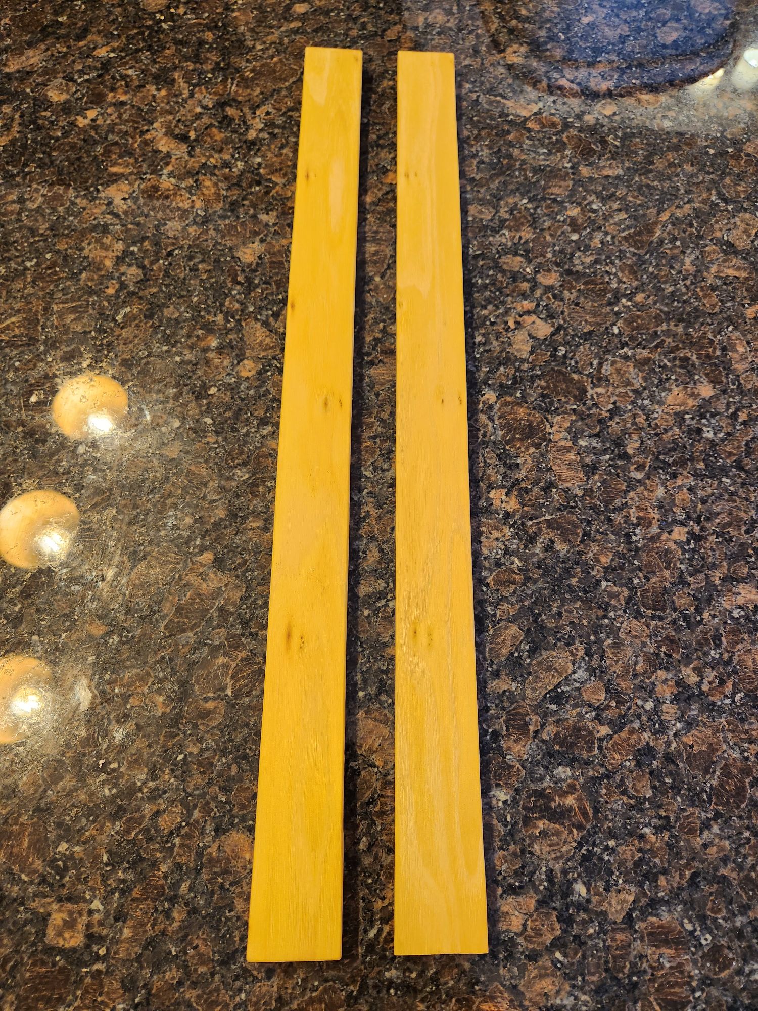 Hatte ich vergessen: Wenn du ringporiges Holz für zu biegende Teile wie die Siyahs benutzt, achte darauf dass die Jahrringe möglichst waagrecht liegen. Hier sind die Ringe leicht diagonal, sowas verzieht sich leichter.