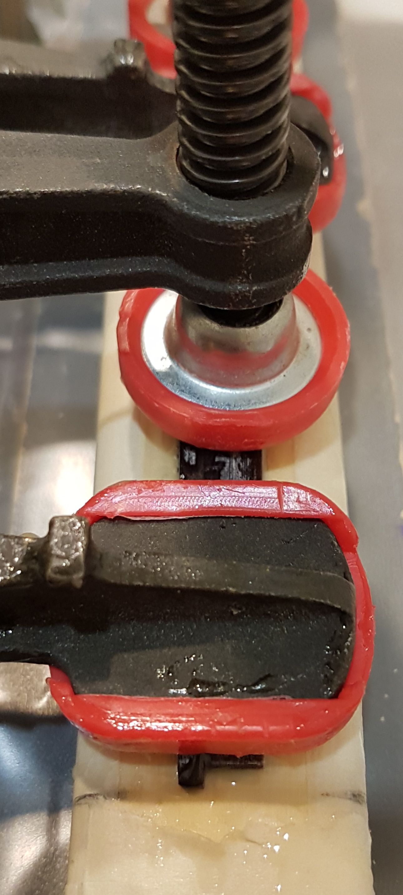 direkt beim aufkleben mit Hosengummi gewickelt und nachgeföhnt. Danach das Teil 10 min. nach draußen und die Hosengummis wieder runter gemacht