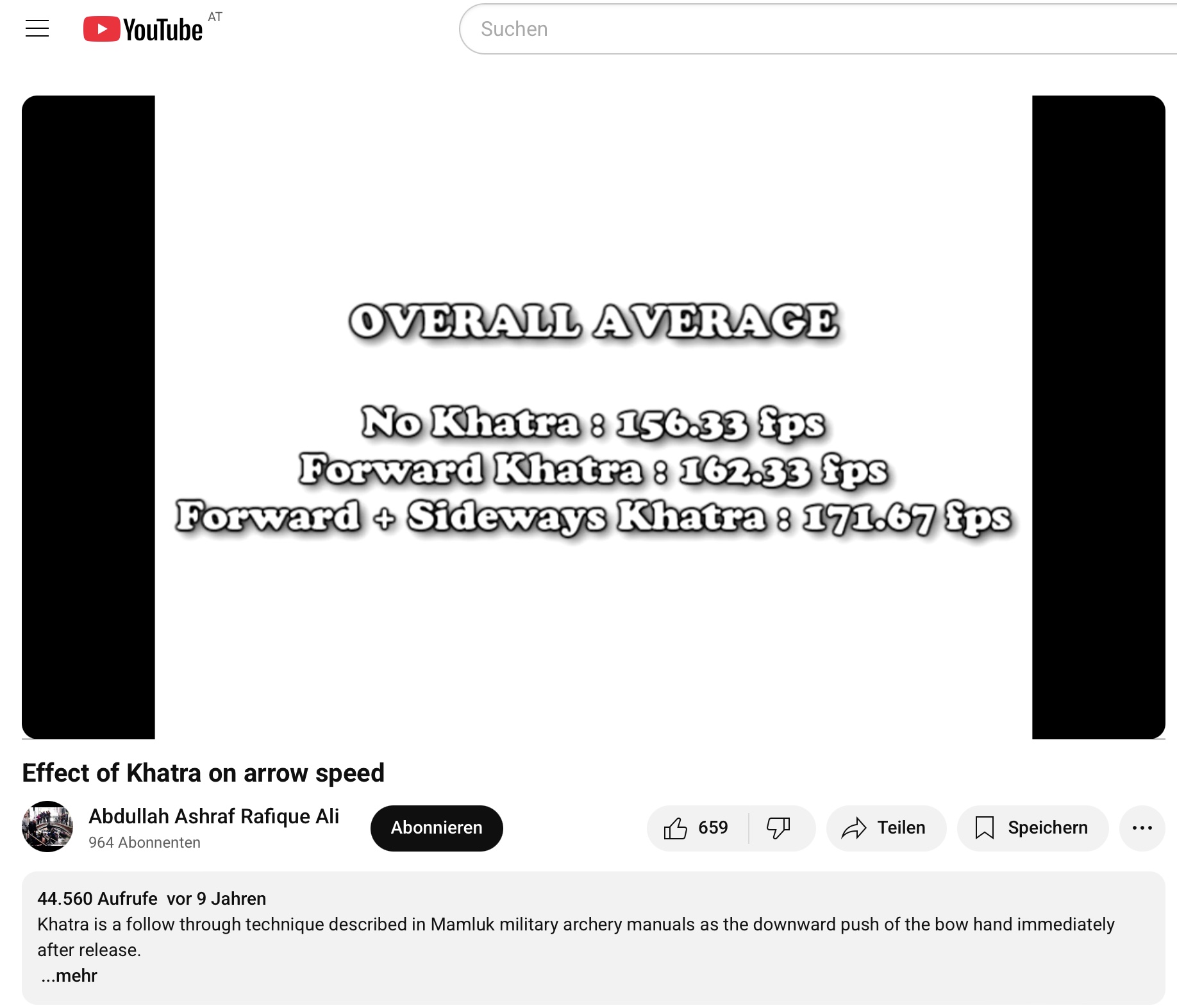 Wer einen gradlinigen Pfeilflug anstrebt, zu höherer Durchschlagskraft und mehr Treffergenauigkeit kommen will, der wird bei der Daumentechnik um Khatra nicht herumkommen, folgendes Video sollte Beweis genug sein: