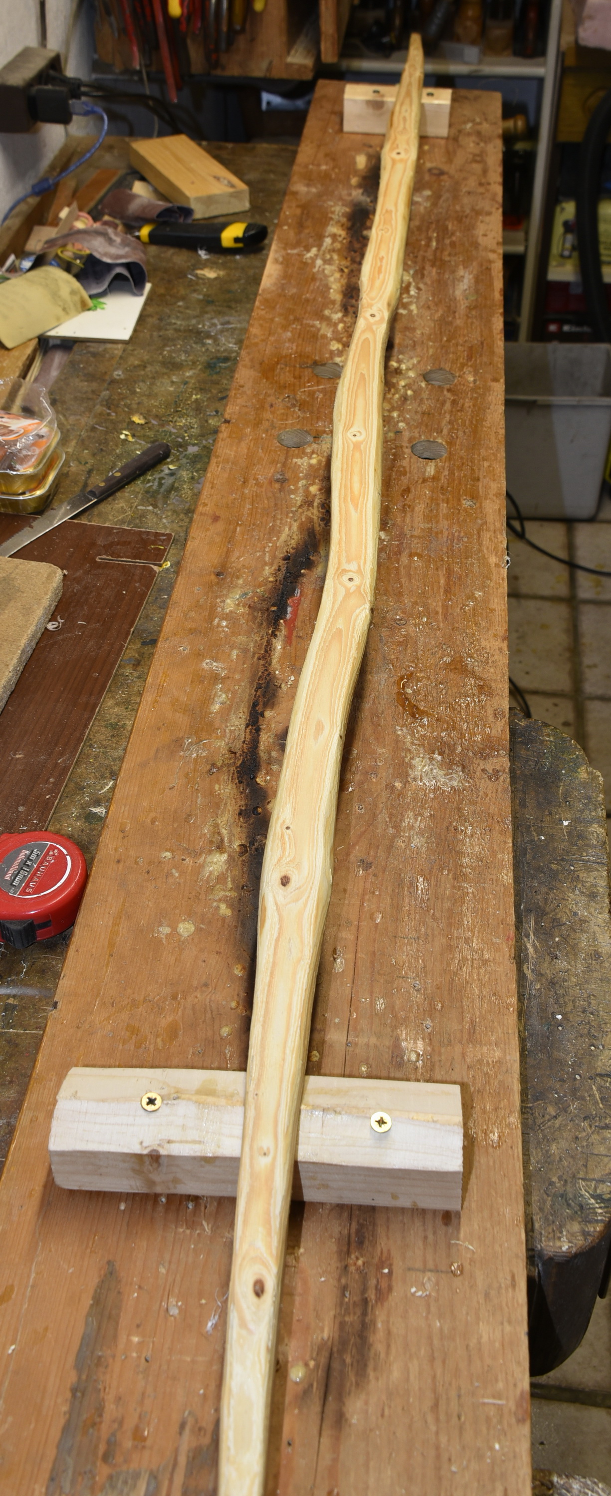 Schon erstaunlich wie sich der Ast verzieht. Die Sehnenlage passt sogar noch.