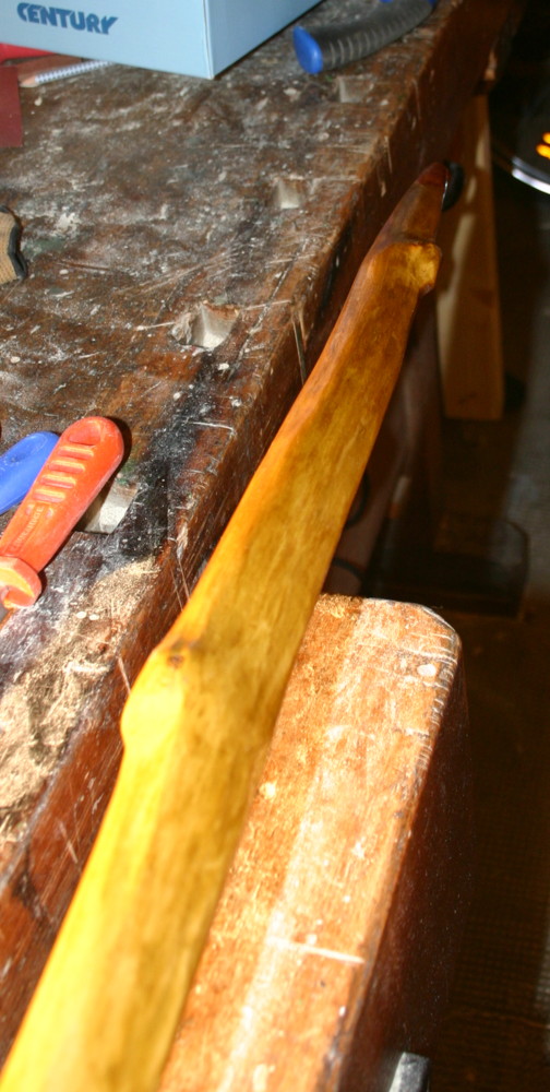 Der Jahresring hat mich glatt 2 Abende beschäftigt, ist wirklich ein wenig schwierig das richtig zu sehen. Dann gings an dden Dickentaper wiederum orientiert an der Zeichnung des Hohenaschaubogens von Dirk, nach dem Dickentaper bekommen die Wurfarme ihr 5-eckiges Profil.