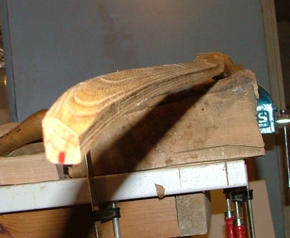 Den Rücken habe ich ein wenig planiert und mit der Raspel aufgerauht, längs zur Faser.