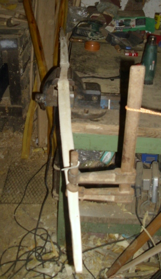 Bilder von den einzelnen Arbeitsschritten hab ich nicht. Ist aber auch nix spannendes passiert. Die Wurfarme hab ich mit Ziehmesser, Schweifhobel und Schweifhobel runtergearbeitet.