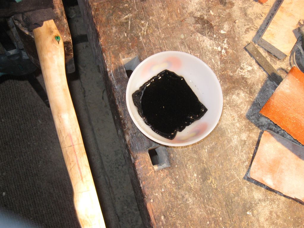Danach habe ich alle Zwingen entfernt und das Leder noch ca. 1 Std. trocknen lassen.