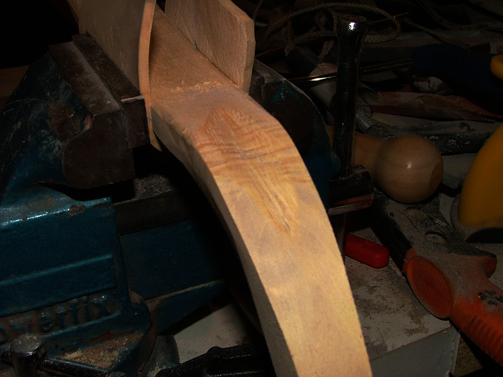 Ich habe eine Rille für die Sene eingefeilt. Und dann die Siyahs so weit in Form gebracht das ich schleifen kann. Das ist nicht der endgültige Tiller die beiden Bilder Sind im verlauf des Tillerns entstanden. Er ist bereits geschliffen, und das Finish ist fast fertig, morgen wird Fotografiert.