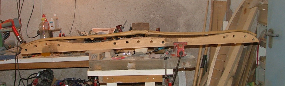 Der Bogen hat nun seid gestern abend 3 Lagen zwei verschiedener Beizen erhalten, je mit einem Zwischenschliff mit 400er Papier, nun erfolgt ein weiterer Schliff dann Schellack und Leinölfirnis.