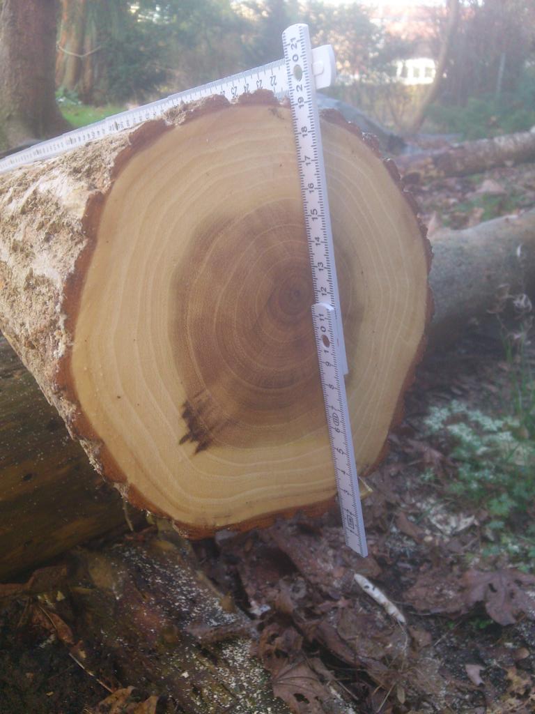 Heute ist mir Schönes widerfahren. Ein freundlicher Mitbürger hat mich angerufen und mir mitgeteilt, dass er eine Esche und einen Bergahorn (jeweils 2,40 m lang) für mich im Wald habe liegenlassen. Er hatte dort Brennholz gemacht. An der mir gezeigten Stelle lagen tatsächlich ausgezeinete Stammstücke. Sie ließen sich hervorragend spalten und teilten sich direkt im Markkanal. Die Esche stand übrigens voll in einem "Sumpfloch", was ihr sehr gut bekommen ist. Ich freue mich auf das reife Holz.
