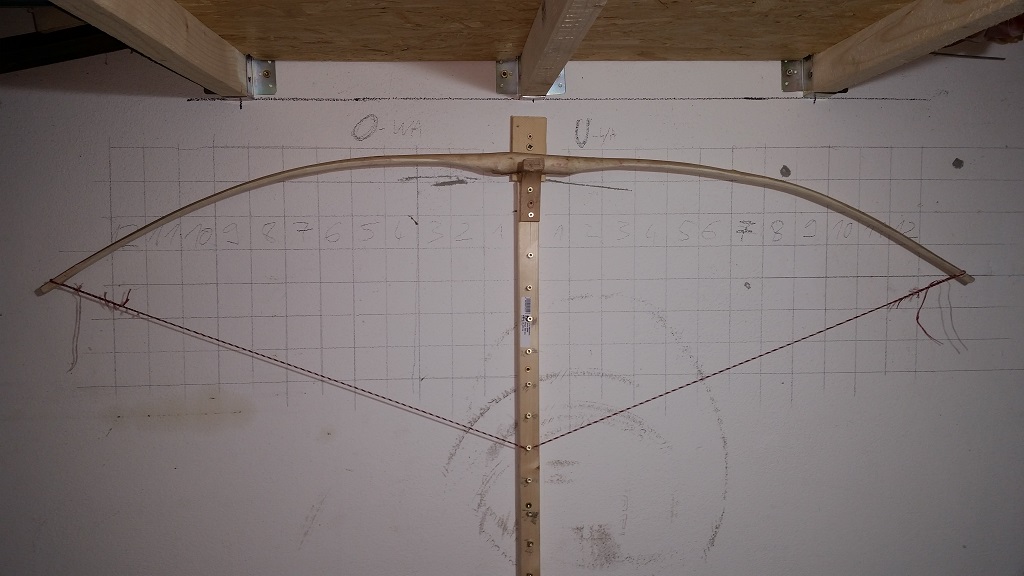 . Aber nicht weiter ausziehen und die Ausrichtung des Bogens auf dem Tillerstock (rechts is weiter unten) nochmal ändern (das erübrigt sich wahrscheinlich, wenn du die Stärke der WAs angleichst, rechts is im Moment noch stärker)