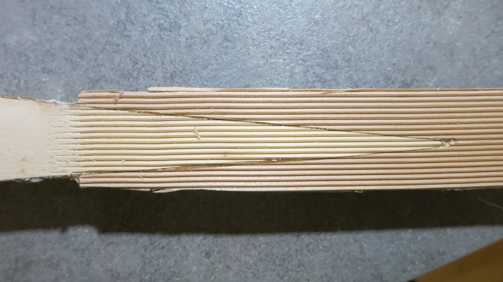 Ich hätte ja noch die andere Hälfte des Bogens. Wie würdest du die Sehne denn ablösen? Und nach dem Ablösen wie gewohnt weichklopfen und auffasern?