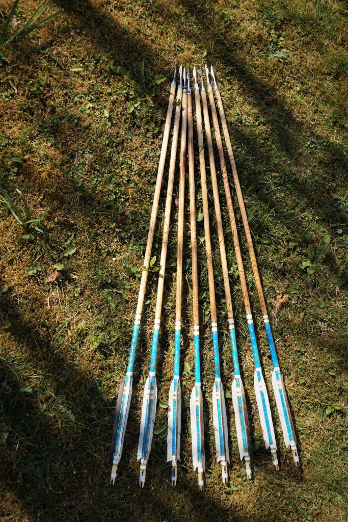 Die Pfeile sind 32'' lang , 895grain(58g) - 926grain(60gramm) schwer und haben einen Spine um die 100# . Es kann sein , dass die Pfeile noch etwas zu weich sind, aber das wird sich bald heraus stellen