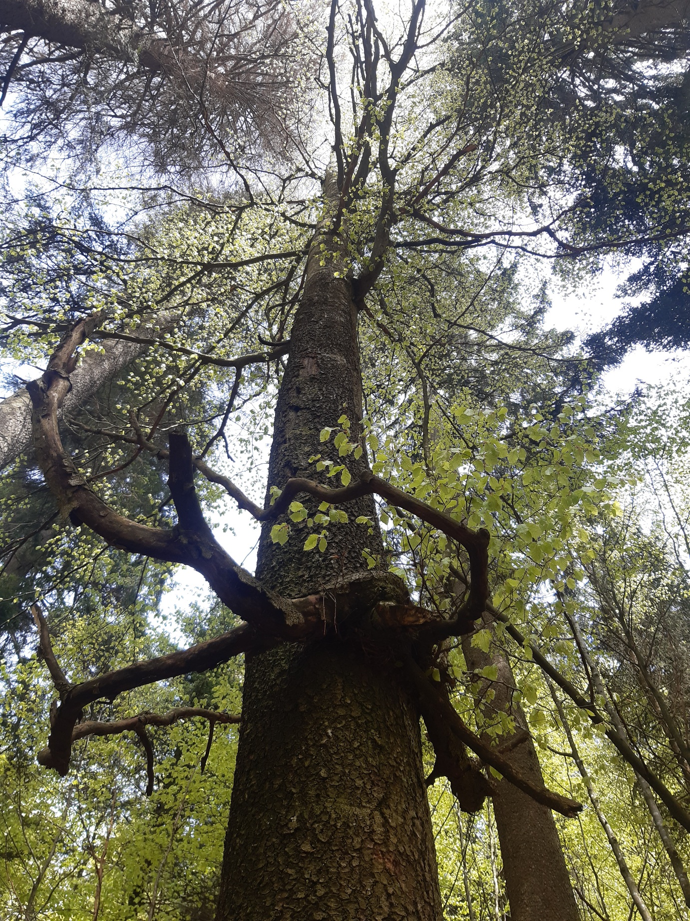 ehrlich gesagt sieht der Baum etwas gebeutelt aus, ich sehe Totholz, "offene" Stammabschnitte und abgefallene Rinde. Vielleicht weniger Genetik als vielmehr ungünstige Bedingungen? Man sollte Ableger von ein paar dieser Bäume mal in einen gesunden Buchenwald im Flachland oder an der Küste setzen. Ich könnt mir vorstellen, die Rinde ist wieder glatt