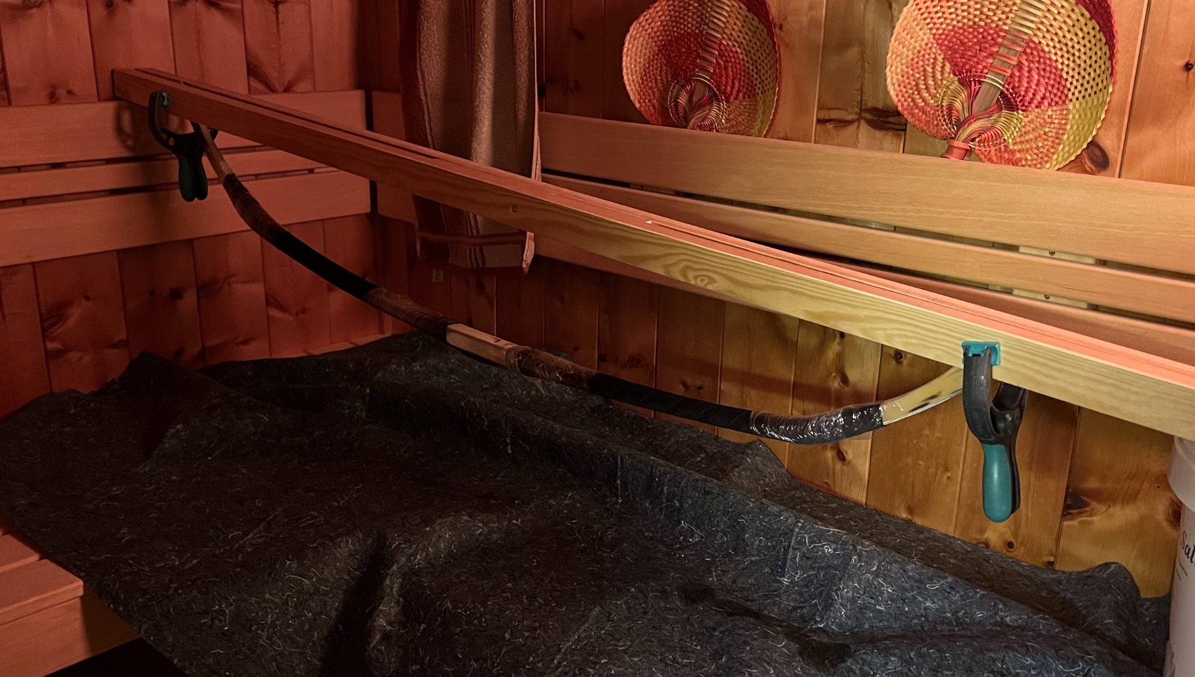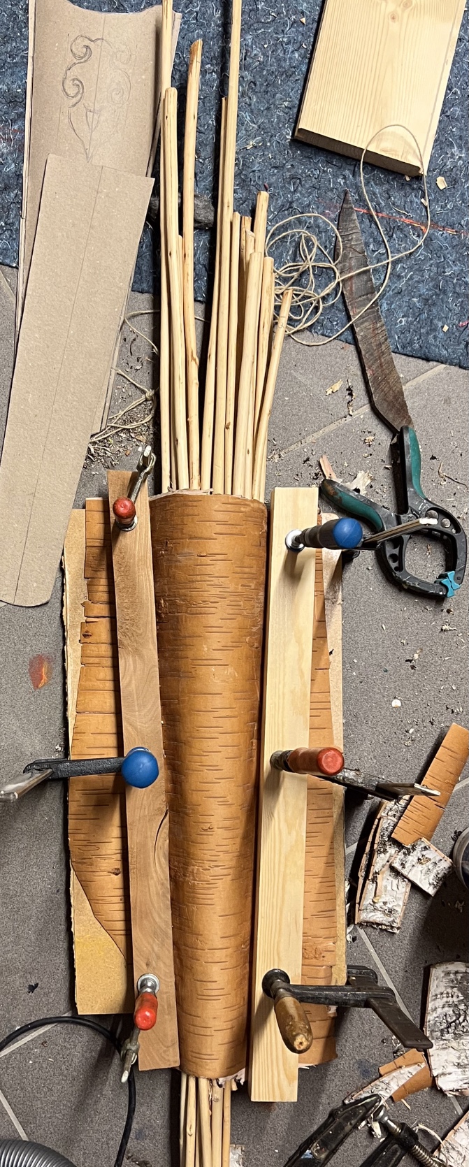 Trocknungszeiten erfordern Geduld, die habe ich nicht unbedingt und da dachte ich, ich versuche in der Zwischenzeit einen passenden Köcher und ev. Pfeile dazu zu bauen. Ein paar Birkenrindenreste habe ich ja noch und die geernteten Bambusschäfte vom Sommer wären auch schon trocken