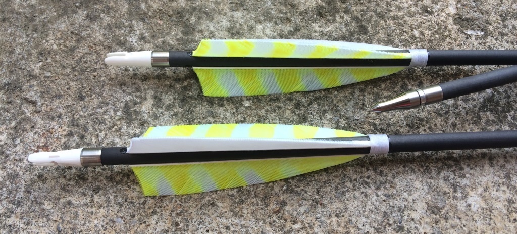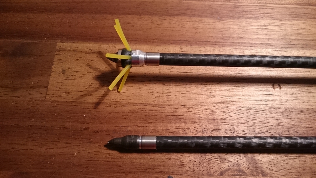 Dies ist die 4. Generation von Carbonpfeilen die ich gebastelt habe und auch der bisher stabilste Pfeil da ich ihn auch zum Roven nutze.