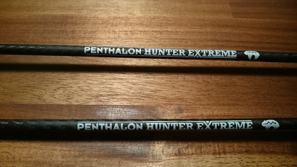 Der Schaft ist ein Penthalon Hunter Extreme, extra belastbar mit Tophat schutzkappen vorne und hinten. Eine gewöhnliche BearPaw Stecknocke, 3D spitze und Roving Crown (wer es noch nicht weiss, die gelben Nylonfäden sind sogar lumineszierend).