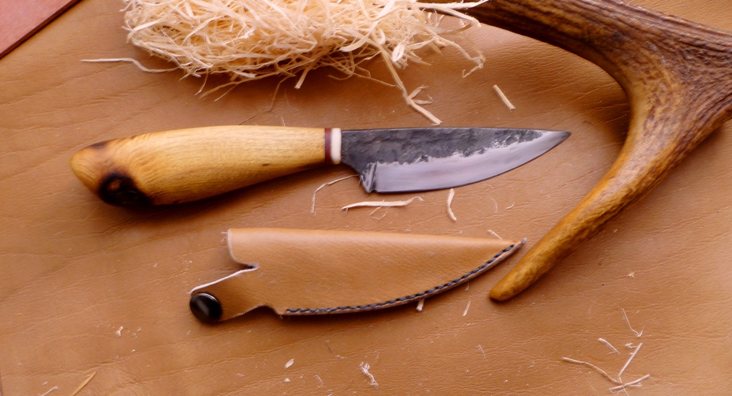 Scheide aus Leder und Druckknopf. Messerbauen macht immer mehr Spass