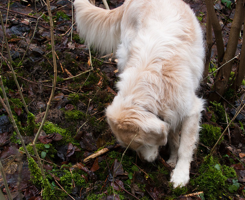 Nach einem Spaziergang von ca. 40 Meter zieht es mein Hund unter einem Apfelbaum, das geht ja schnell: