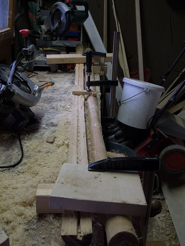 auch mit der Stichsäge war das noch ganz schön heftig, das nasse zähe Kernholz der Robinie grob in Form zu sägen