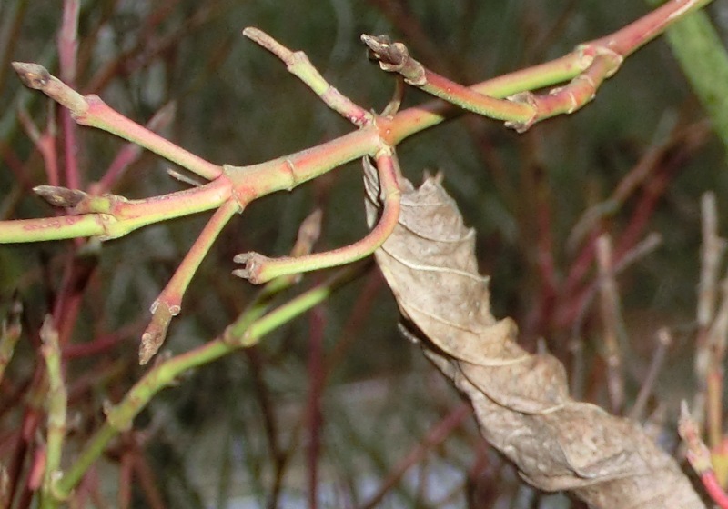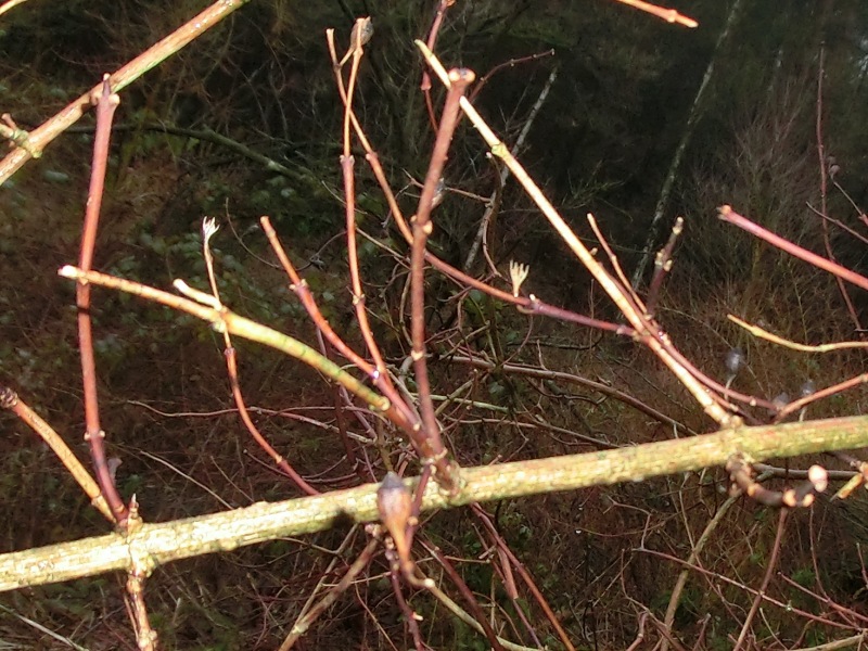 Zuerst den lange markierten Roten Hartriegel. Ein paar Knospen und ein totes Blatt. Dann habe ich noch einen Pfeiffenstrauch eingesammelt. Okay hier wollte meine Kamera sich nicht auf die Knospen scharf stellen. Alle Bilder mit Blitz aufgenommen, bei uns war es Wetterbedingt schon ab 14:00 Uhr dämmerig!